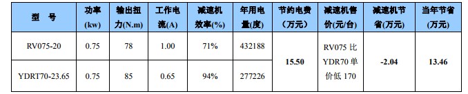 實(shí)例:清遠(yuǎn)某陶瓷釉線 120 臺,用齒輪機(jī)替代 RV 方箱電費(fèi)節(jié)省實(shí)例。